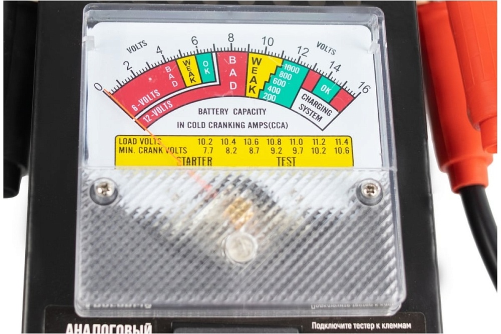 • Определяет степень заряда и исправности АКБ с номинальным напряжением 6/12 В.