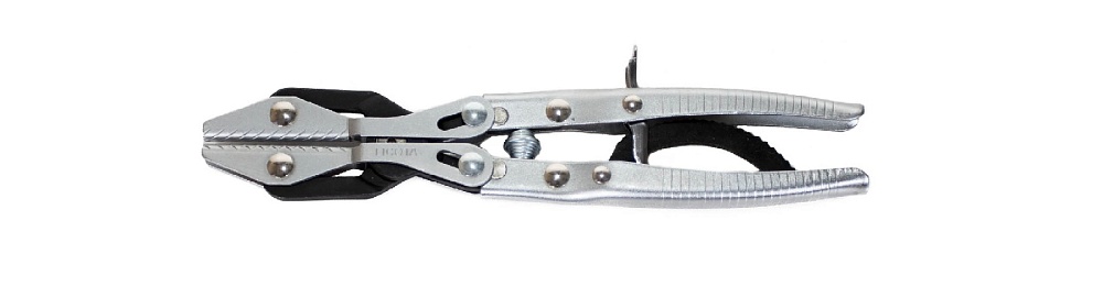 При зажиме губки приспособления находятся строго паралельно друг другу, что обеспечивает плотный сжим и предохраняет шланги от повреждения.