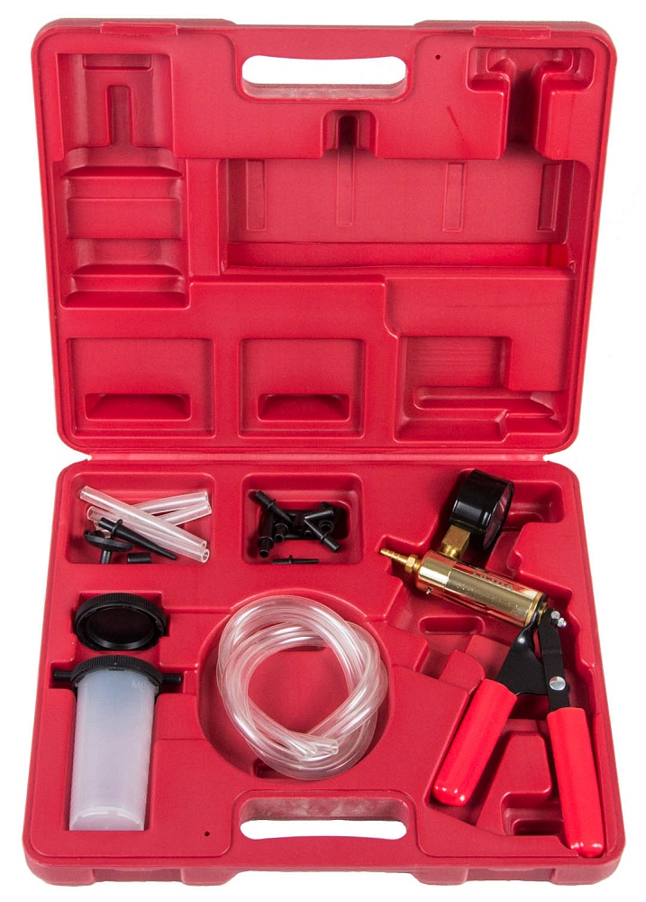 В наборе имеются резервуары и переходники для прокачки тормозов.