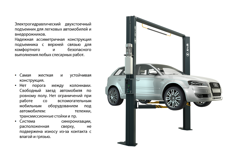 Подъемник двухстоечный, электрогидравлический, г/п 3.5 т, асимметричный