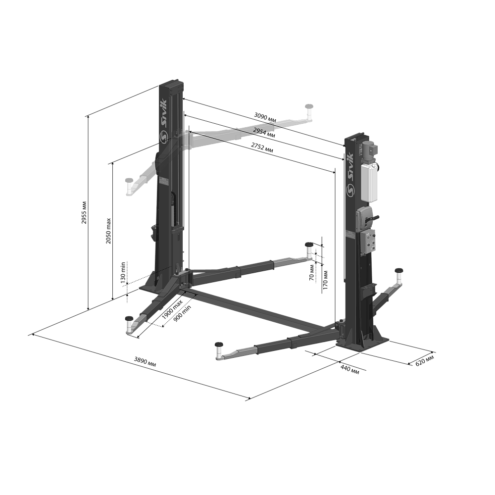 Классическая симметричная конструкция с удлиненными трехсоставными подхватами прекрасно подходит для работы на длиннобазных автомобилях.