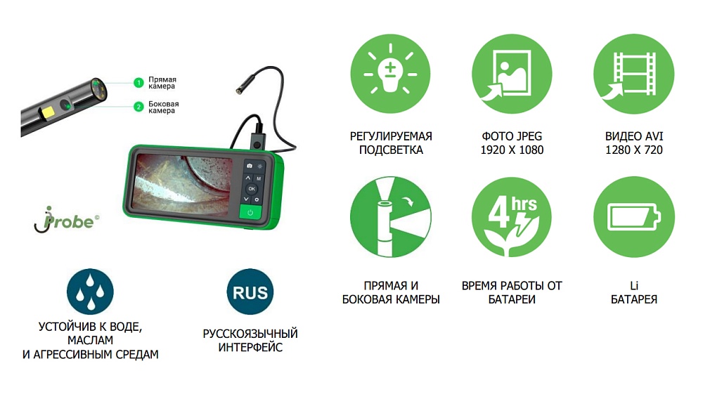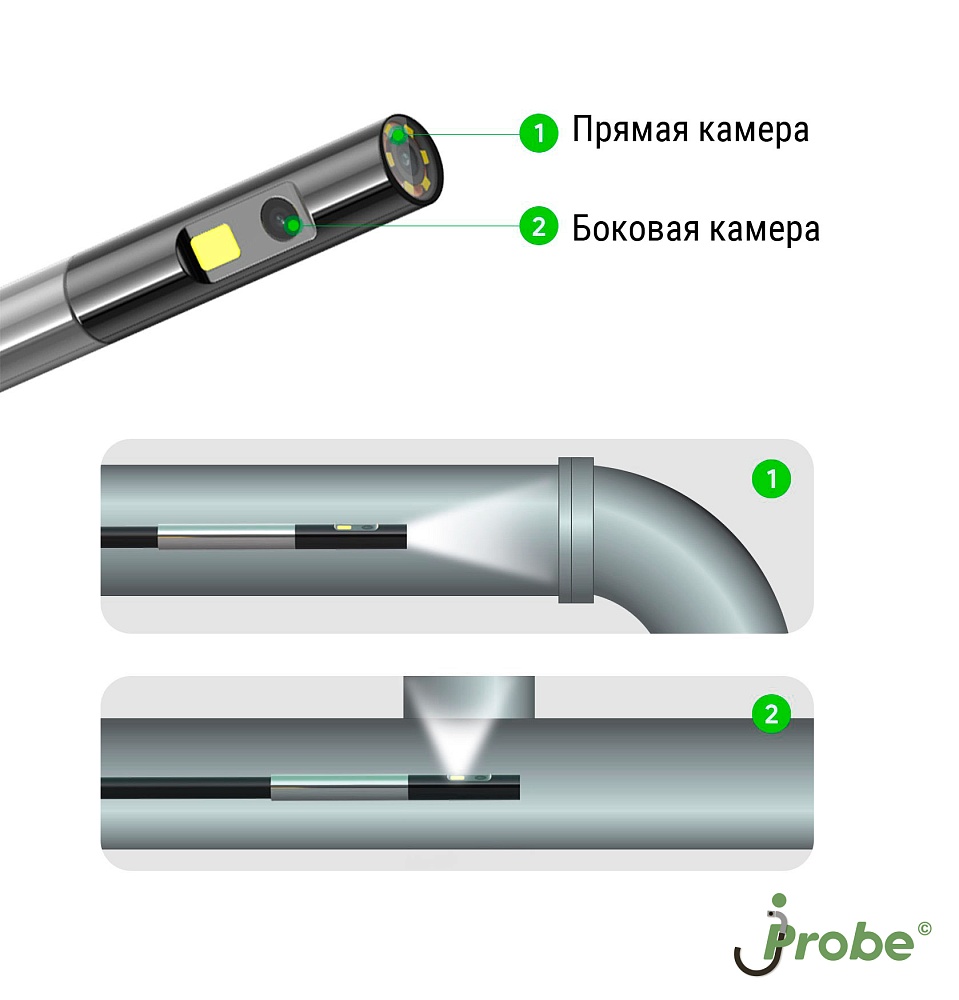 Видеоэндоскоп jProbe DT с двумя камерами, 720p + фото FulHD