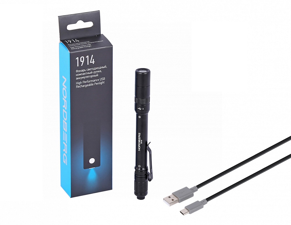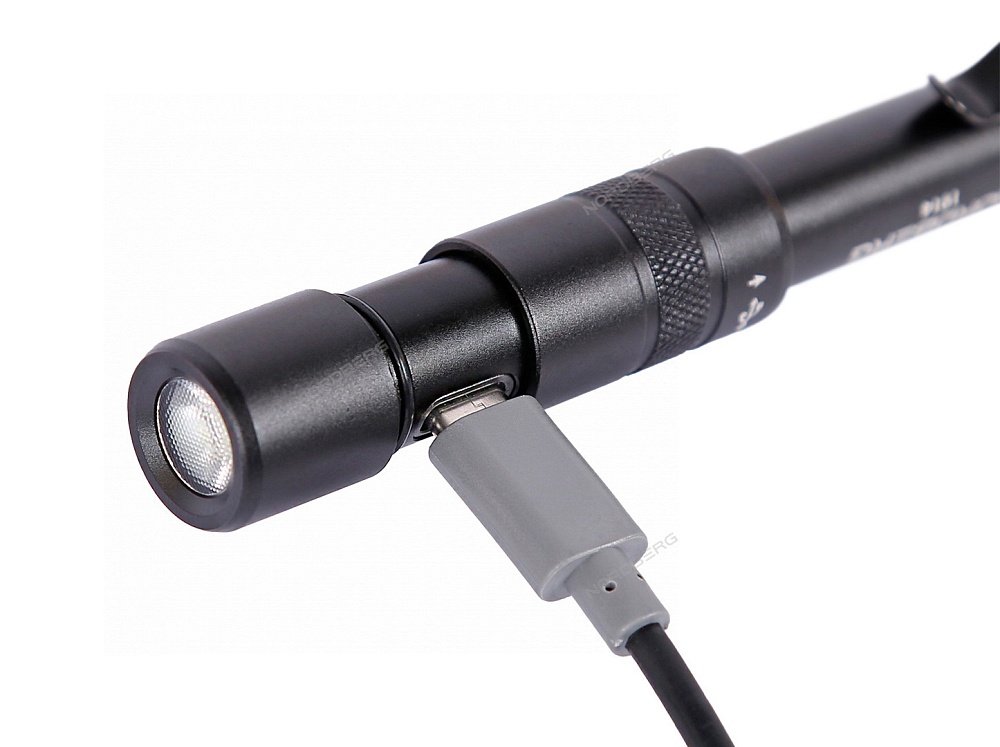 • Зарядка встроенного аккумулятора осуществляется через разъем Type-C в фонаре и через разъем USB от источника питания.