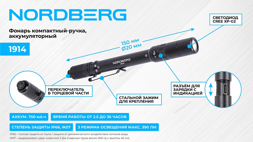 • Время работы от 2,5 до 36 часов в зависимости от выбранного режима.