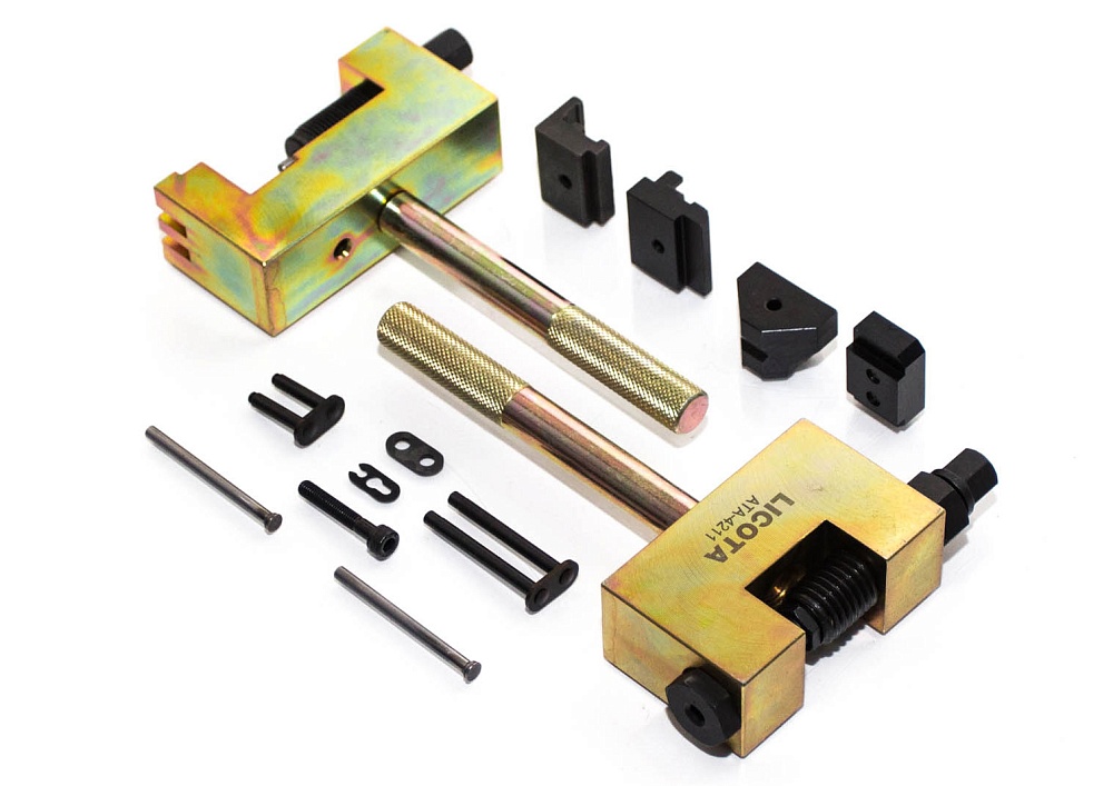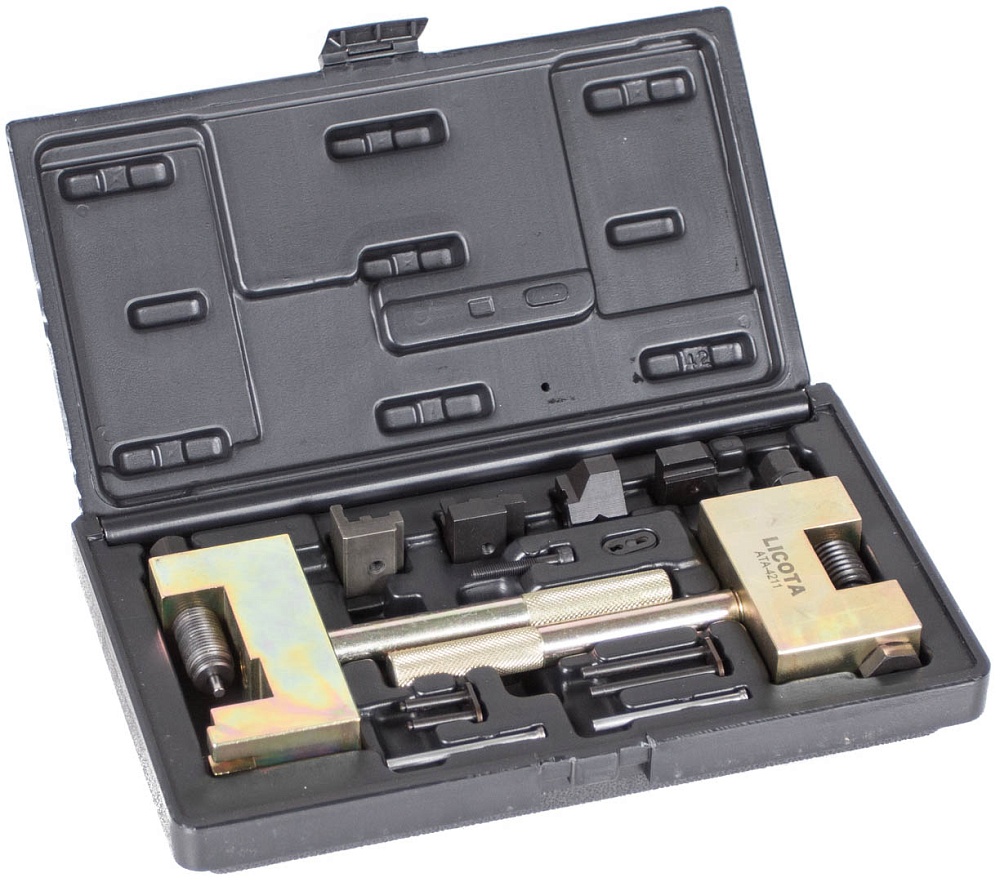 Набор применяется для заклёпки / расклёпки звеньев цепи газораспределительного механизма автомобилей Mercedes.