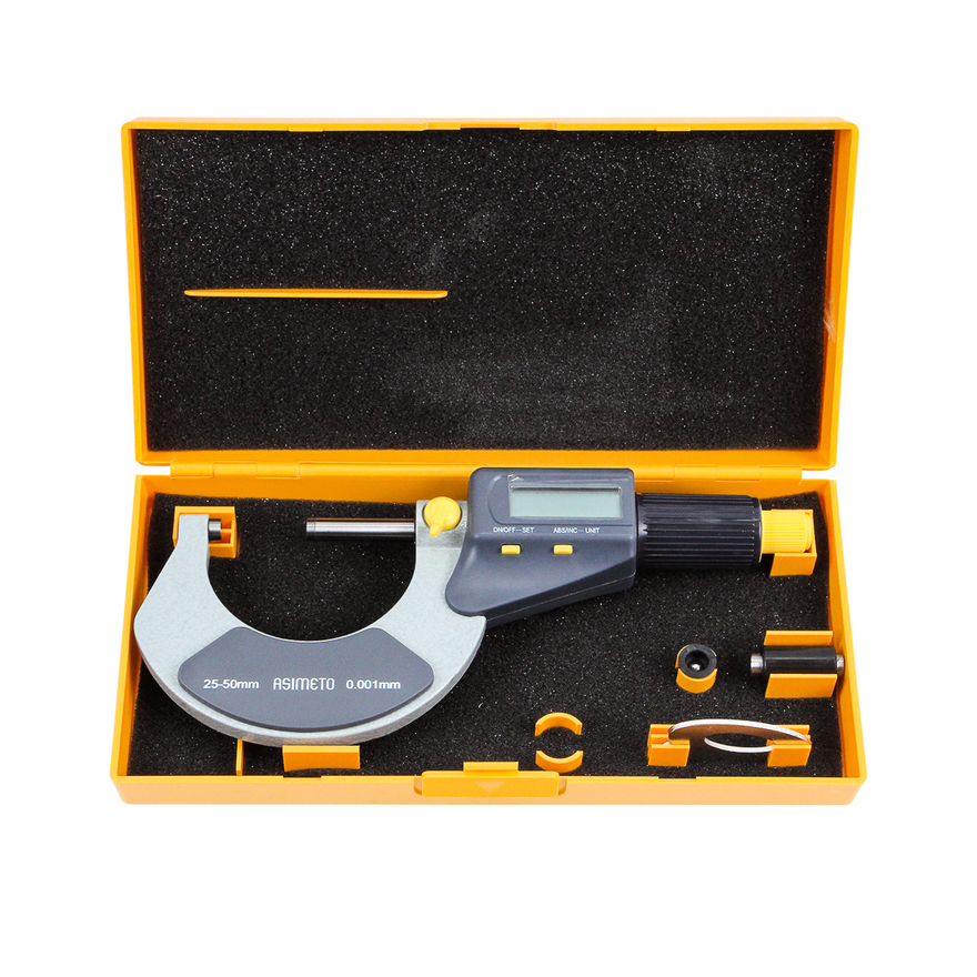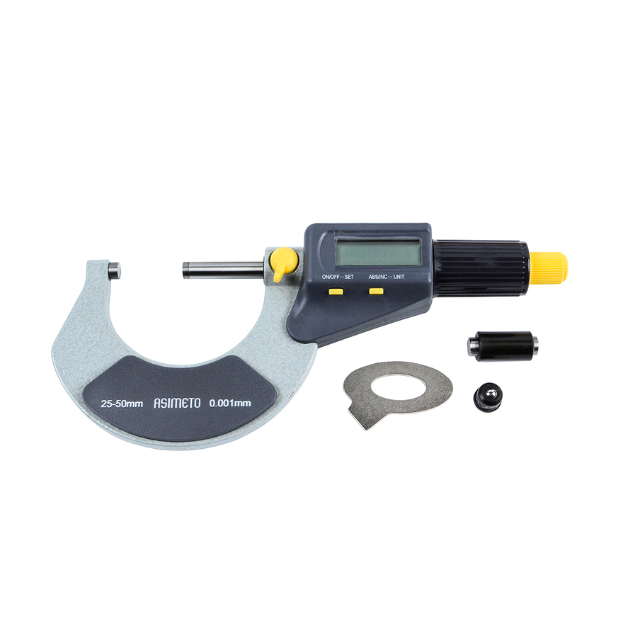 Микрометр гладкий цифровой для наружных измерений Asimeto 116-04-0 - универсальный прибор для измерений линейных размеров абсолютным или относительным контактным методом с низкой погрешностью в области малых размеров. Преобразовательным механизмом является микропара “винт - гайка”.