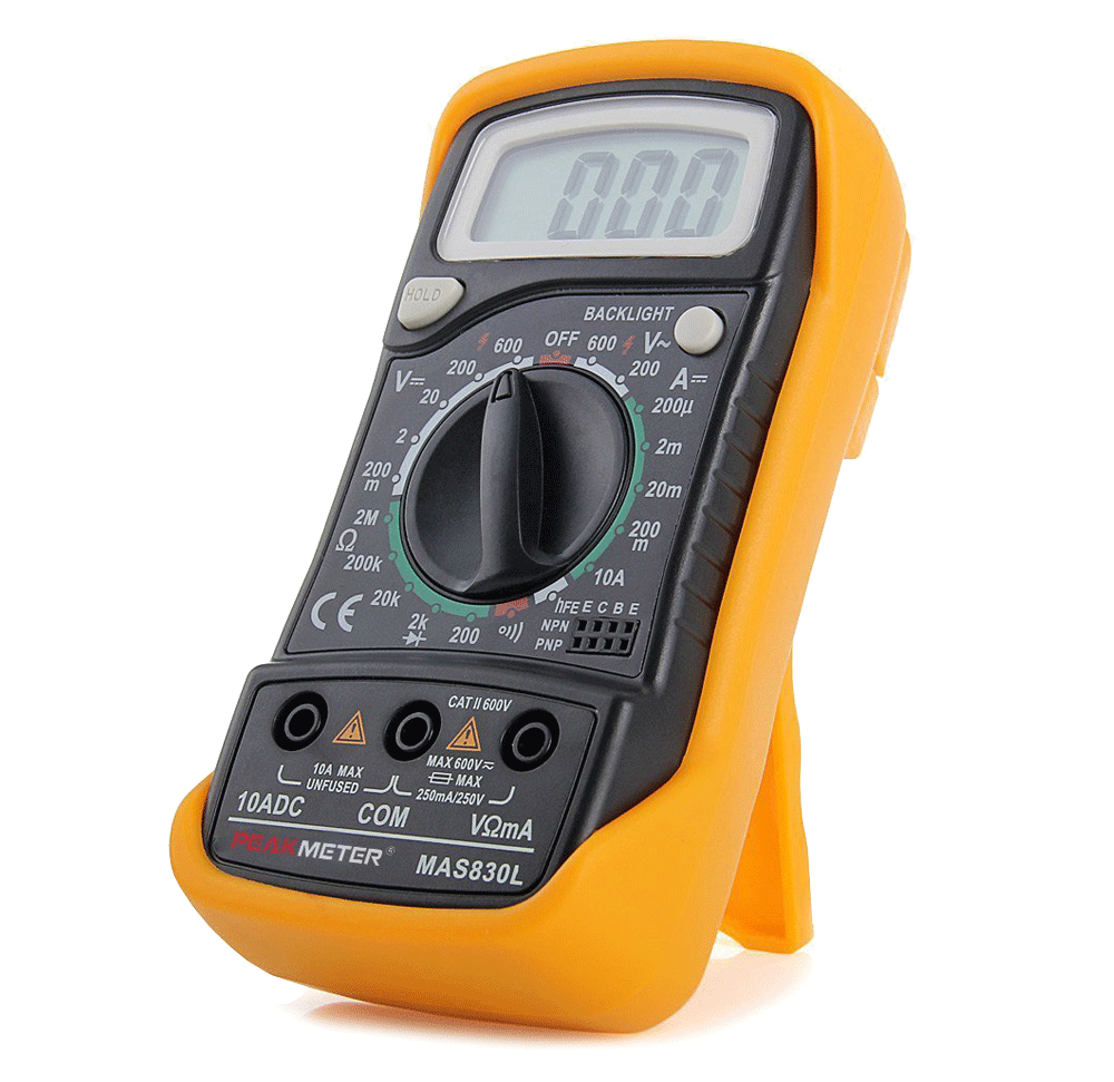 Цифровой мультиметр MAS830L предназначен для измерения силы тока, постоянного и переменного напряжения, сопротивления, определения направления тока диодов и параметров транзисторов.