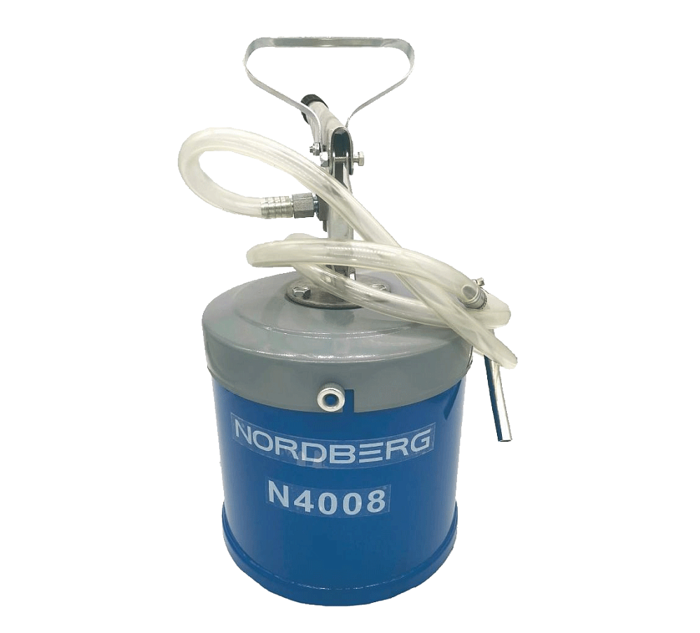 Установка для раздачи масла с ручным насосом NORDBERG N4008 представляет собой стальную емкость объемом 8 л, c ручкой для удобства перемещения в помещении автосервиса, оборудована ручным насосом, который создает давление, необходимое для раздачи масла.