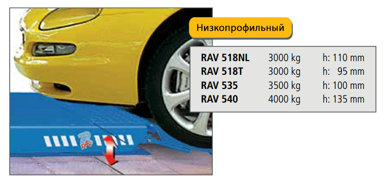• низкопрофильное исполнение подъемника позволяет заезжать любым автомобилям