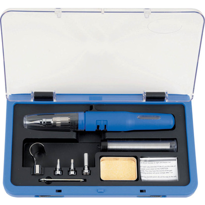 Паяльник газовый прямой 7.5 мл производства компании Licota в комплекте с различными насадками.