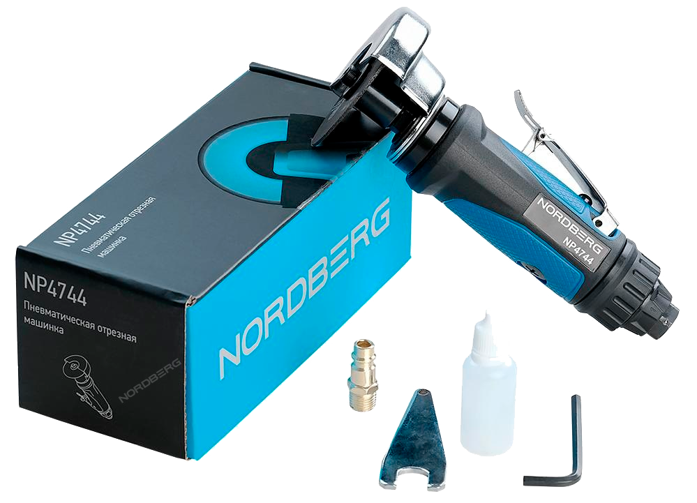 Пневмо отрезная машинка NP4744 Ø 75мм для резки и обработки металлических деталей в труднодоступных местах, оснащена предохранителем от случайного включения на курке