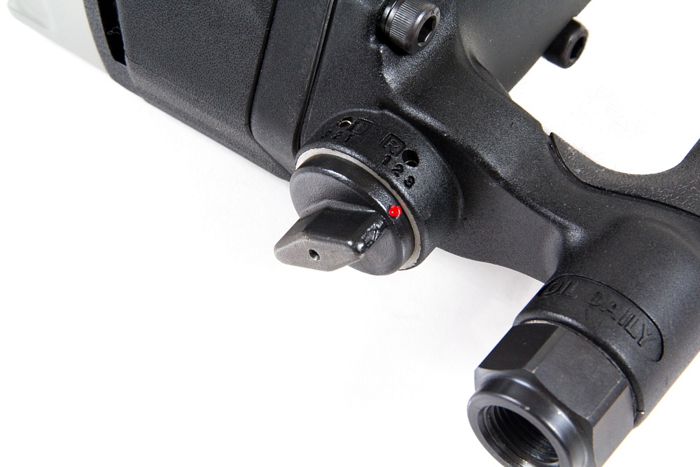 Регулировка силы крутящего момента производится при помощи рукоятки, расположенной на корпусе гайковерта.