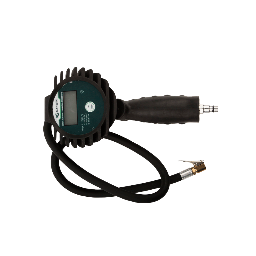 Цифровой манометр диаметром 80 мм поддерживает разные единицы измерений (bar и psi), обеспечивая комфортное обслуживание шин от разных производителей и с разными стандартами измерений . Наличие цифрового дисплея с подсветкой позволяет вести работы в темноте или в сумерках, мгновенно и без ошибок считывая показания.