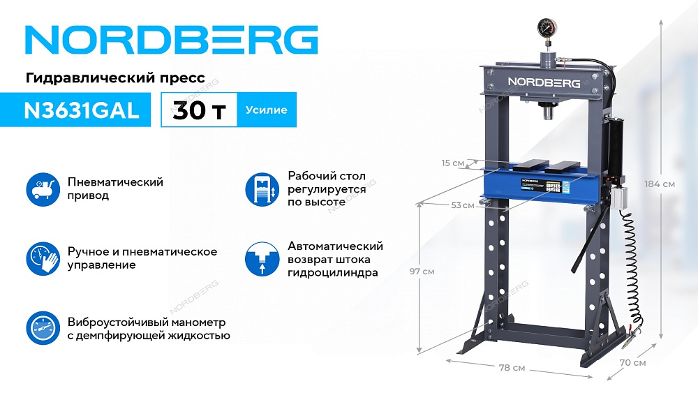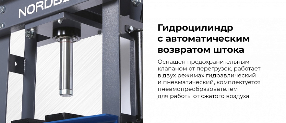 - Два режима работы: гидравлический и пневматический привод позволяют выбрать удобный способ управления;