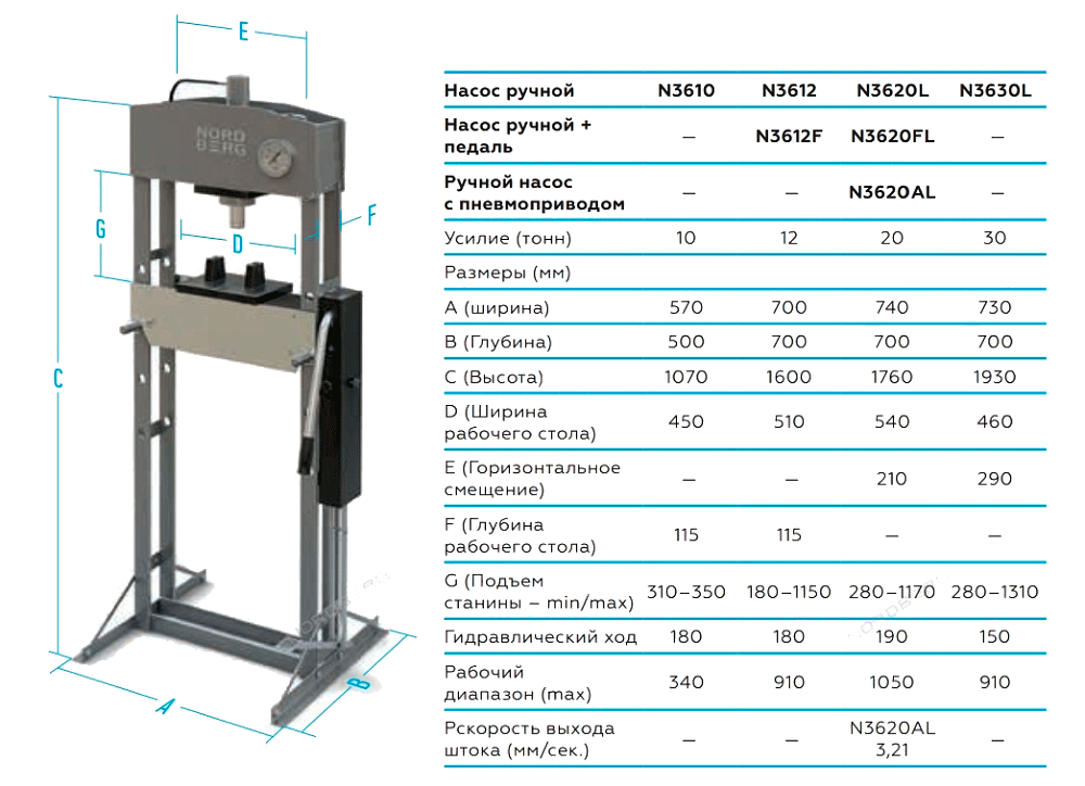 Напольный гидравлический пресс с ручным приводом NORDBERG ECO N3620L