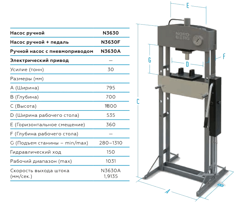 Пресс напольный гидравлический 30т с ручным приводом