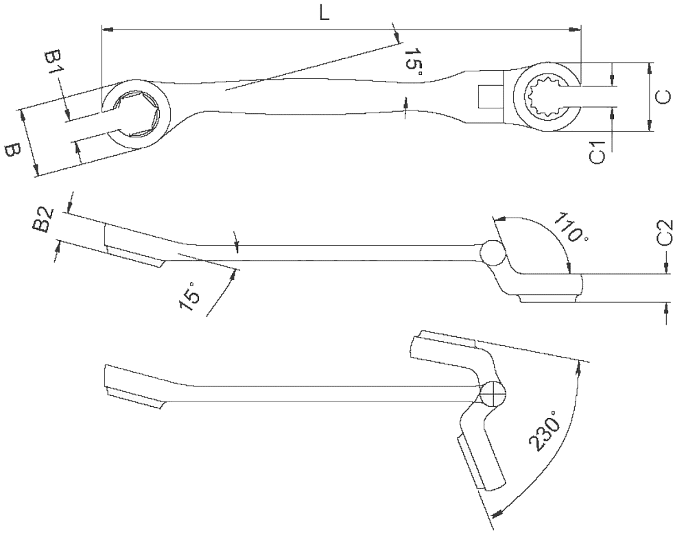 Разрезной ключ с полукарданом для тормозных трубок и топливных магистралей.