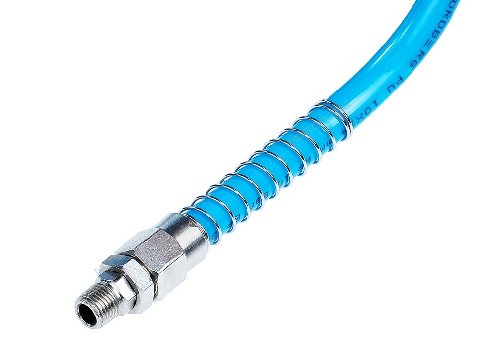 Спиральная форма шланга делает работу с пневмоинструментом более комфортной.