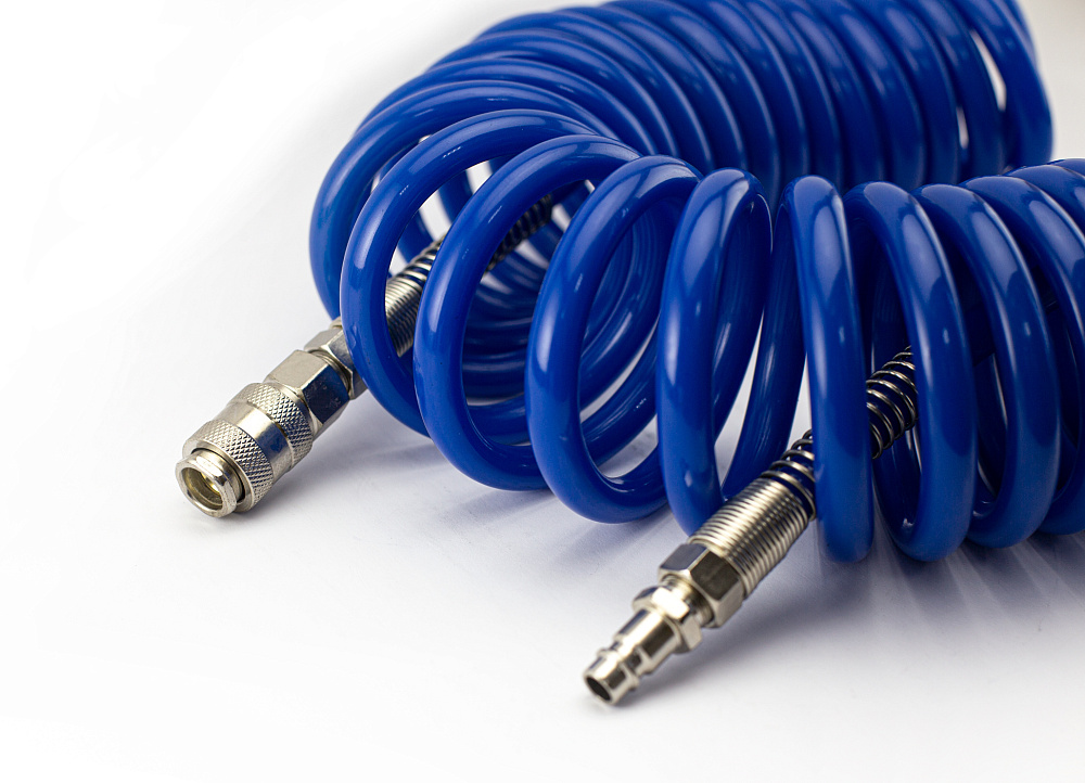 Спиральная форма шланга делает работу с пневмоинструментом более удобной.