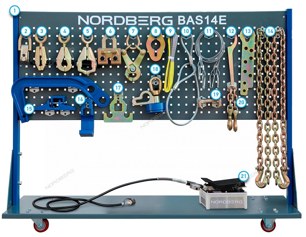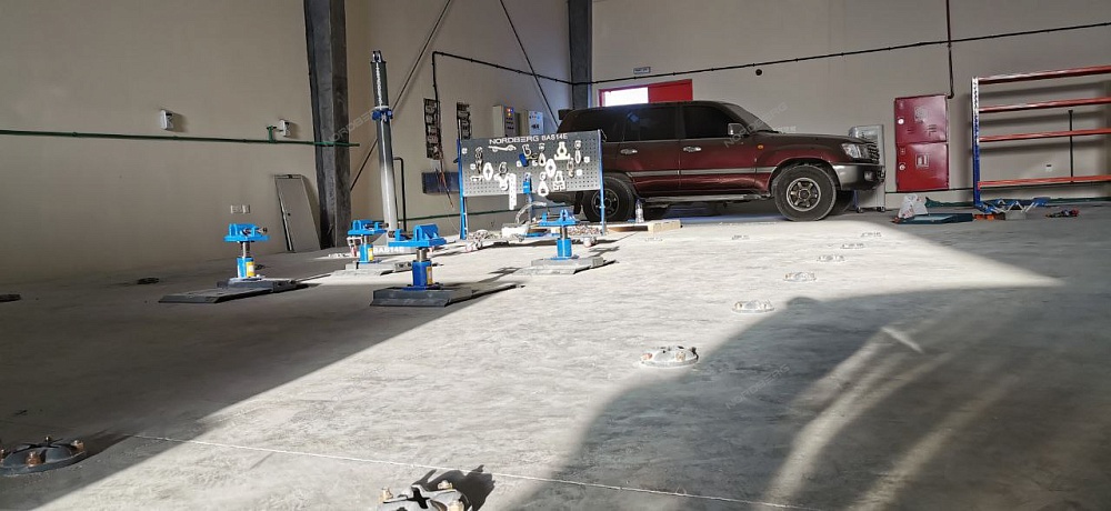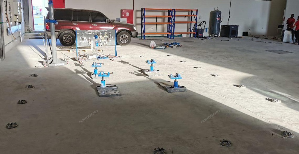 Стапель NORDBERG BAS14E для восстановления геометрии кузовов легковых автомобилей и внедорожников.