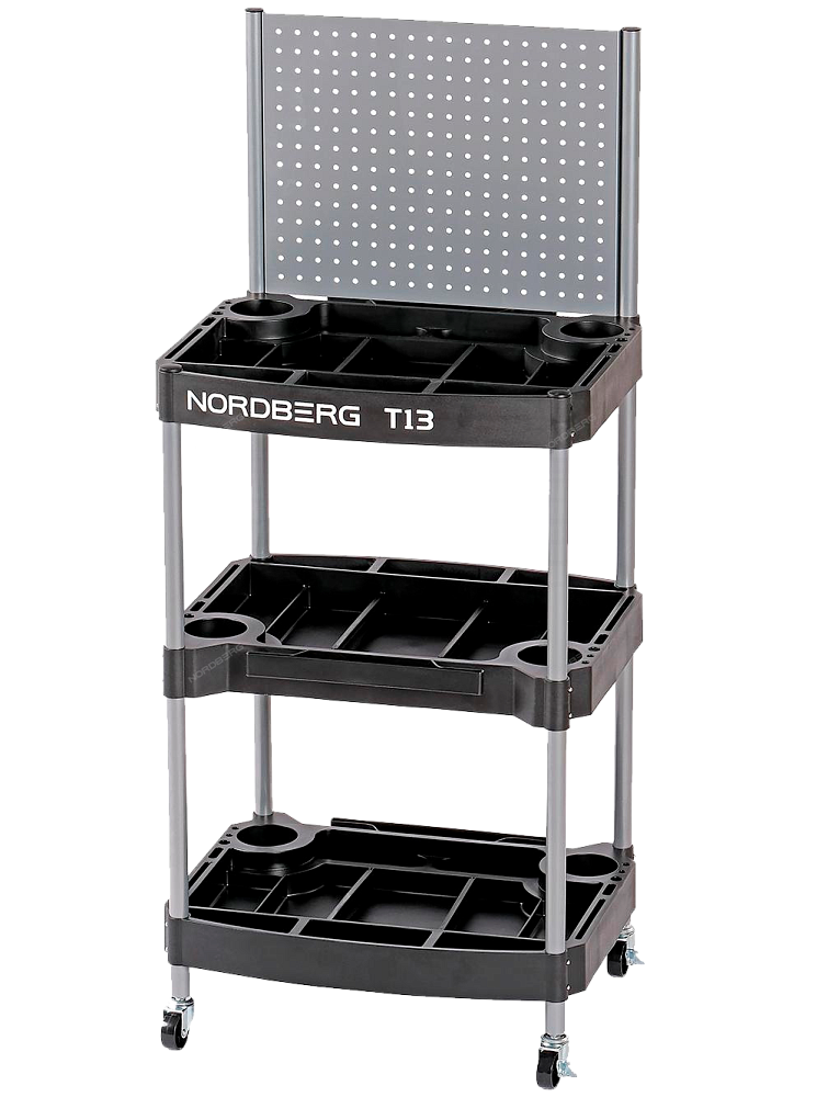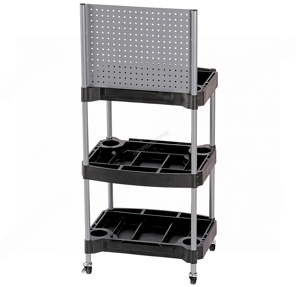 Тележка инструментальная с 3 пластиковыми полками и перфорацией