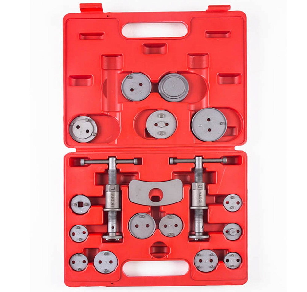 Вставляется в суппорт и выжимает тормозной цилиндр, что значительно упрощает установку тормозных колодок. Инструмент спроектирован таким образом, чтобы подходить большинству современных автомобилей.