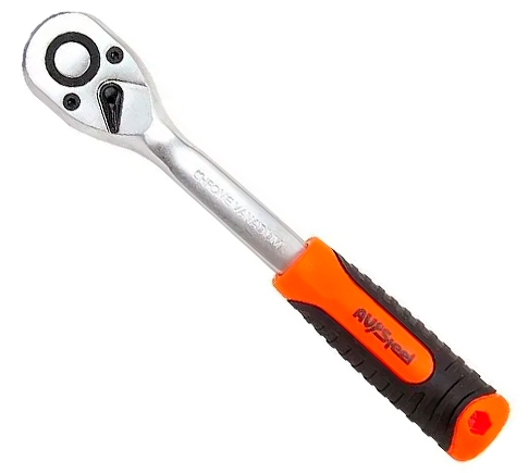 Трещотка с двухкомпонентной изогнутой ручкой AV Steel AV-528623  предназначена для быстрого и эффективного закручивания или откручивания крепежа.