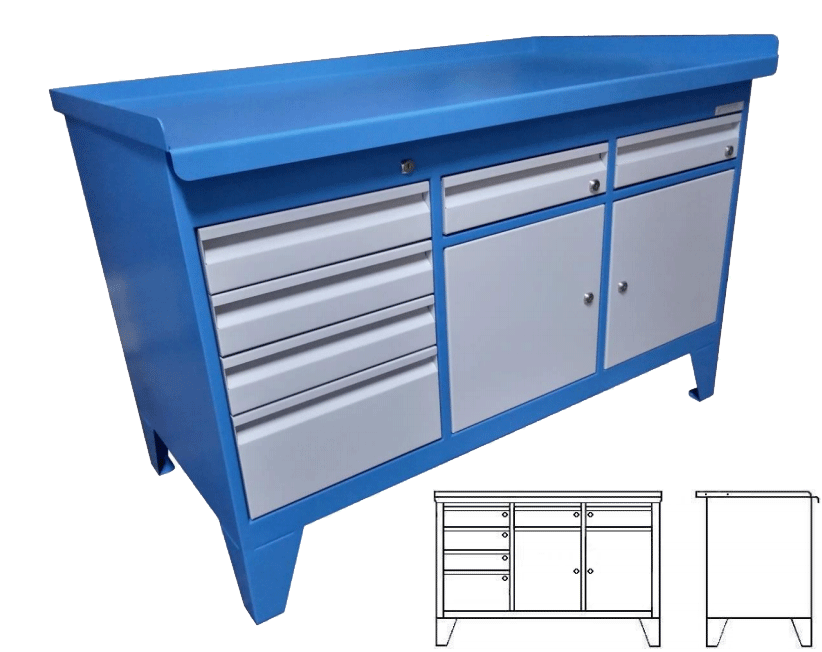 Верстак металлический предназначен для выполнения различных слесарных работ, хранения инструмента, крепежа и прочих предметов.