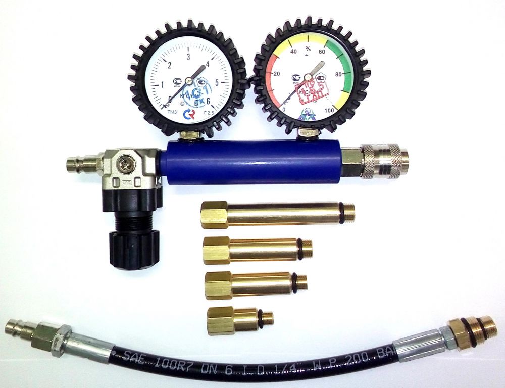 С  помощью данного прибора определяется степень износа цилиндро-поршневой группы, оценивается плотность прилегания клапанов к сёдлам, целостность прокладки головки блока цилиндров и т.д., путём анализа падения величины давления сжатого воздуха, подаваемого в цилиндр через свечное отверстие.