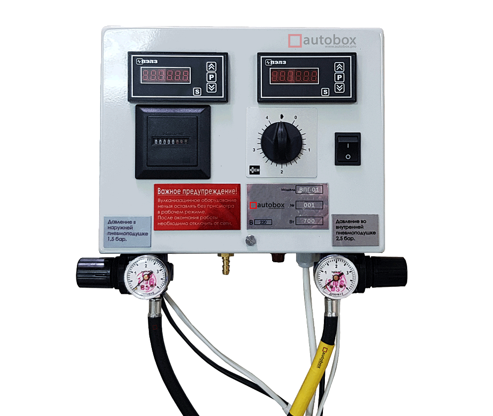 ВПГ-01 современный вулканизатор с возможностью подключения пневмоподушек и гибких нагревательных элементов которые идут в комплекте с вулканизатором.