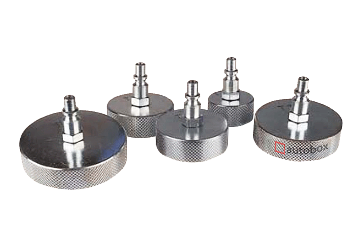 Набор металличесих адаптеров для устройства для прокачки гидросистем, состоит из 5 предметов.